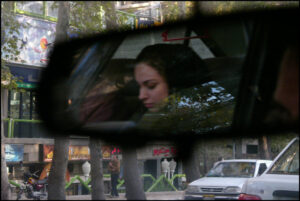 IRAN. Tehran, February 2004. The upper part of Valiasr Avenue. A man looking at a woman in a traffic jam.